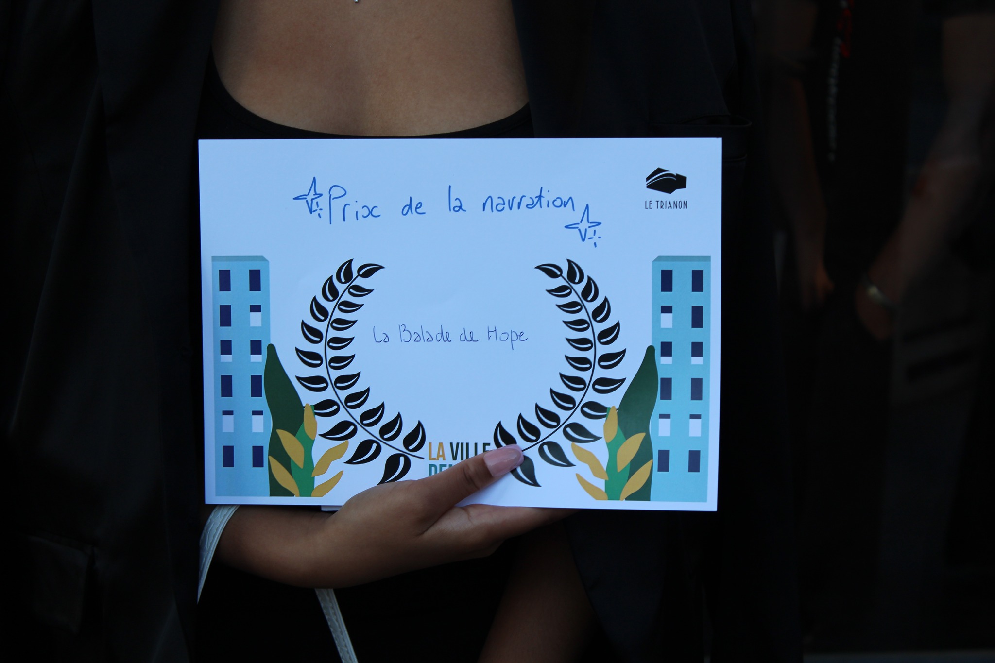 Nous sommes très fières de vous annoncer que Hope, une jeune fille qui participe depuis plusieurs années à nos ateliers vidéo, a remporté samedi 8 juin 2024, lors du festival « Les enfants font leur cinéma », le prix de la meilleure narration pour son film « La balade de Hope » !